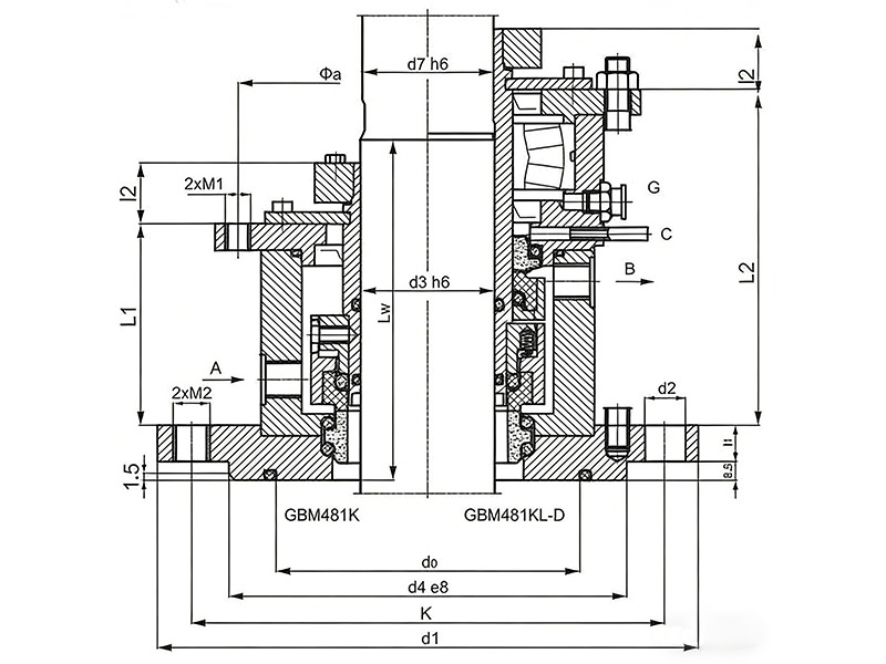 The GB-M37 mechanical seal is a single-face, non-balanced seal with a conical spring design. Manufactured in accordance with EN12756 (DIN24960) standards, it offers reliable sealing performance for pumps and rotating equipment under moderate pressure and temperature conditions.